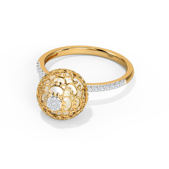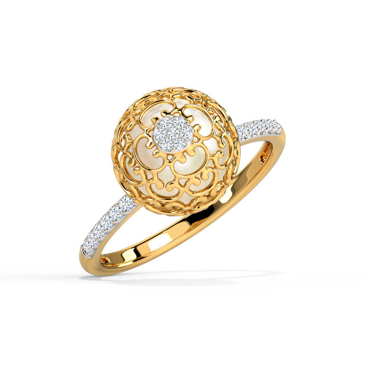 Pearl Ornate Moissanite Diamond Ring